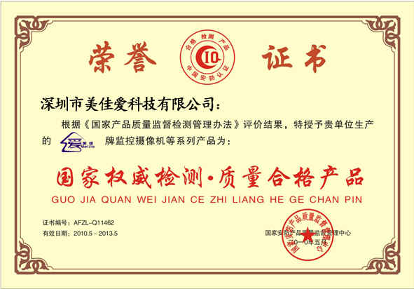 國(guó)家權(quán)威檢測(cè) 質(zhì)量合格產(chǎn)品證書副本